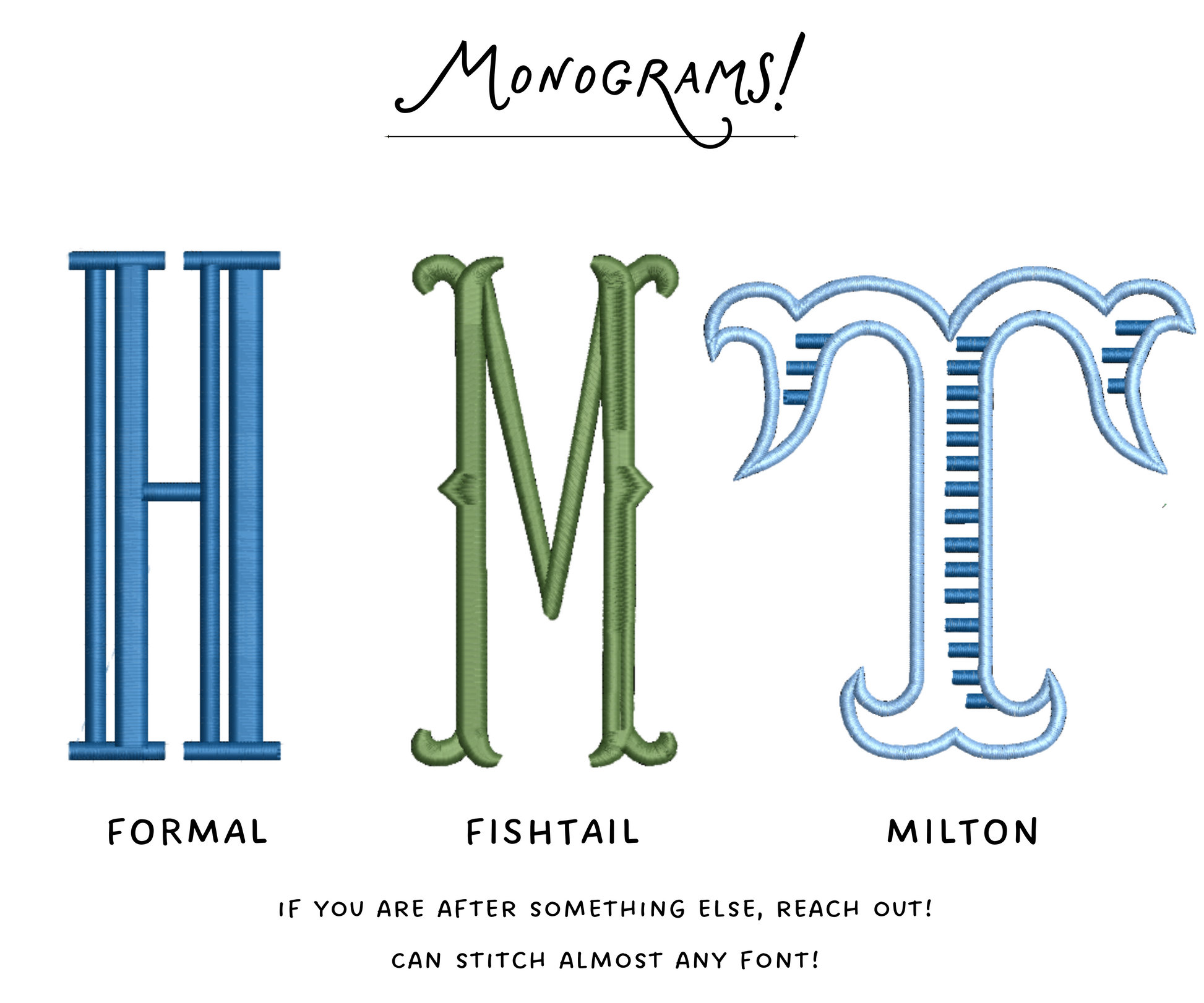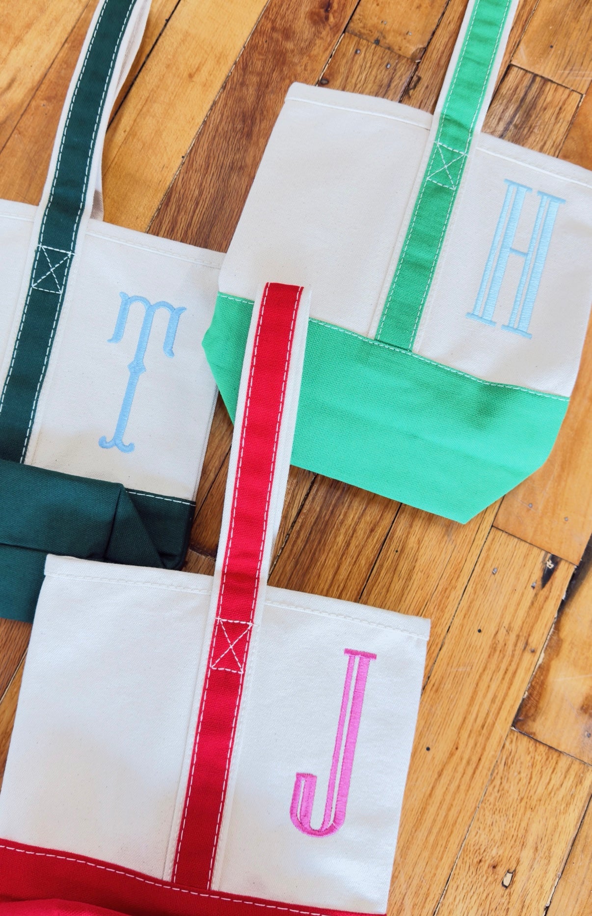 *pictured in green tote + formal monogram + sky thread*