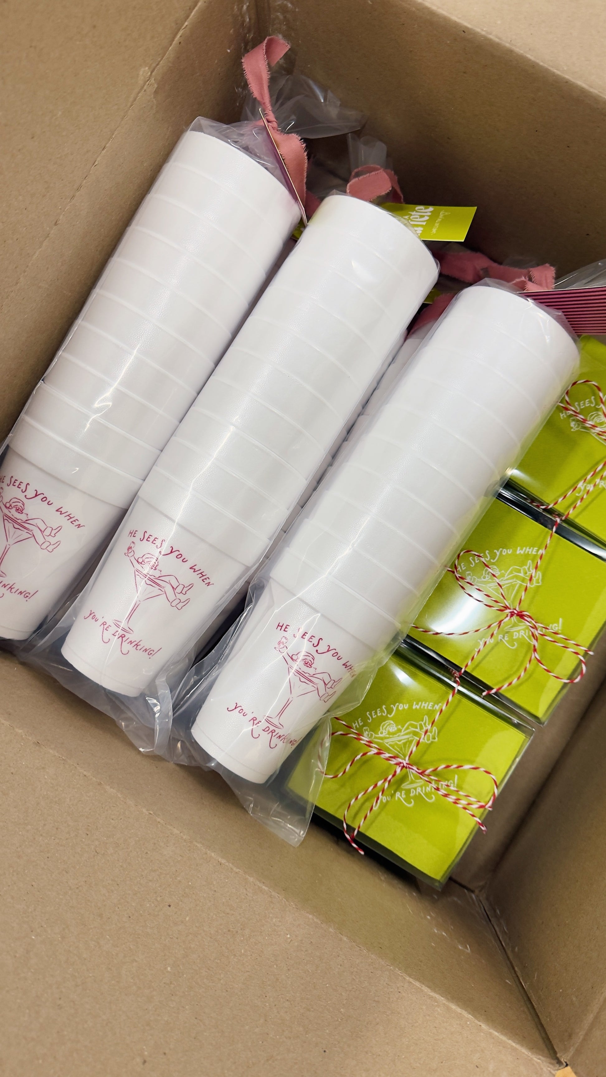 Jingle all the way this holiday season! Here to make your parties the merriest! These cups bring sass and fun to your millionth Christmas party! Perfect dirty santa gift!