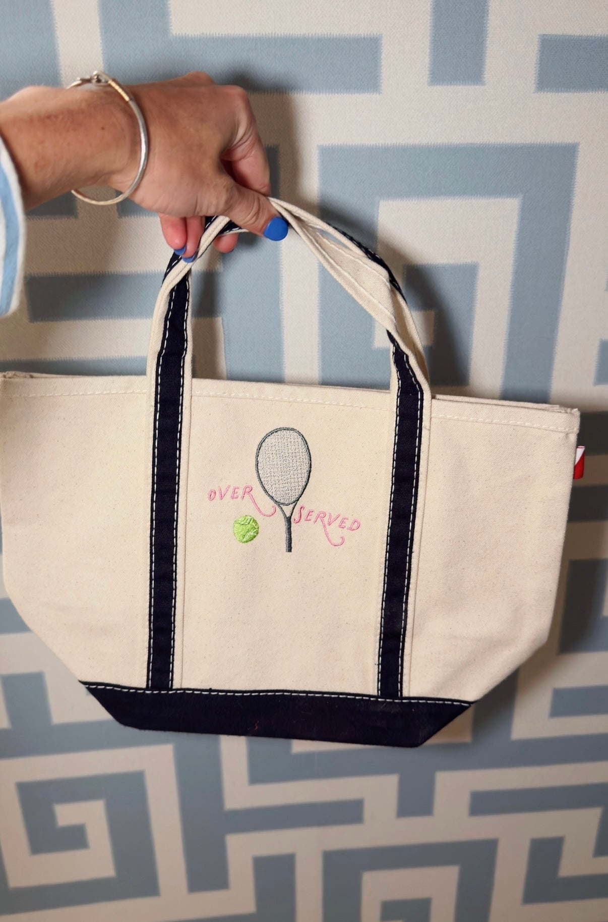 Embroidered on a navy + natural canvas mini tote!! perfect for your everyday running around!