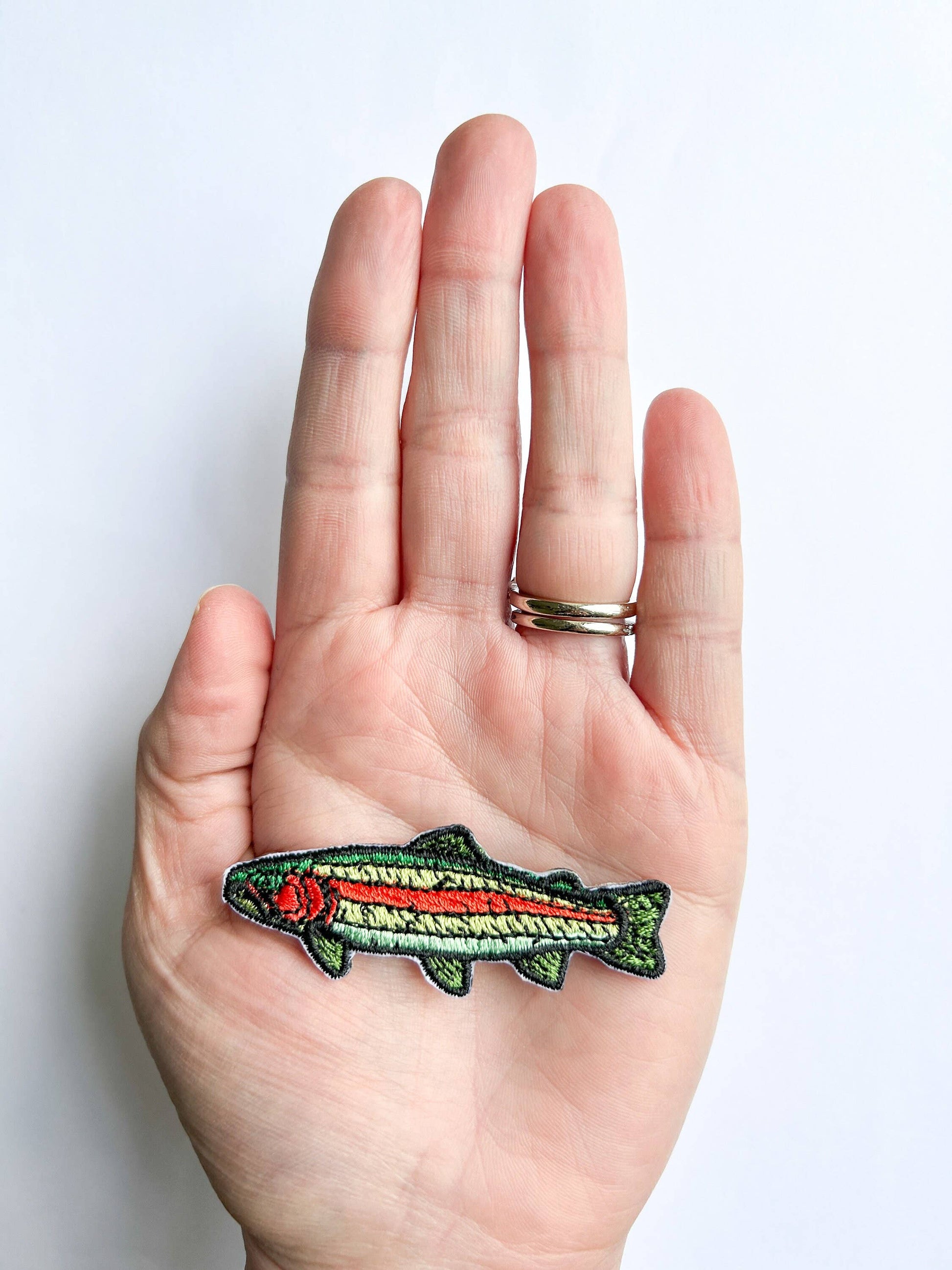 Celebrate your love for fishing and the beauty of nature with our Rainbow Trout Embroidered Iron-On Patch! Shaped like a stunning rainbow trout, this patch is perfect for anglers, outdoor enthusiasts, and anyone who appreciates vibrant and unique designs.