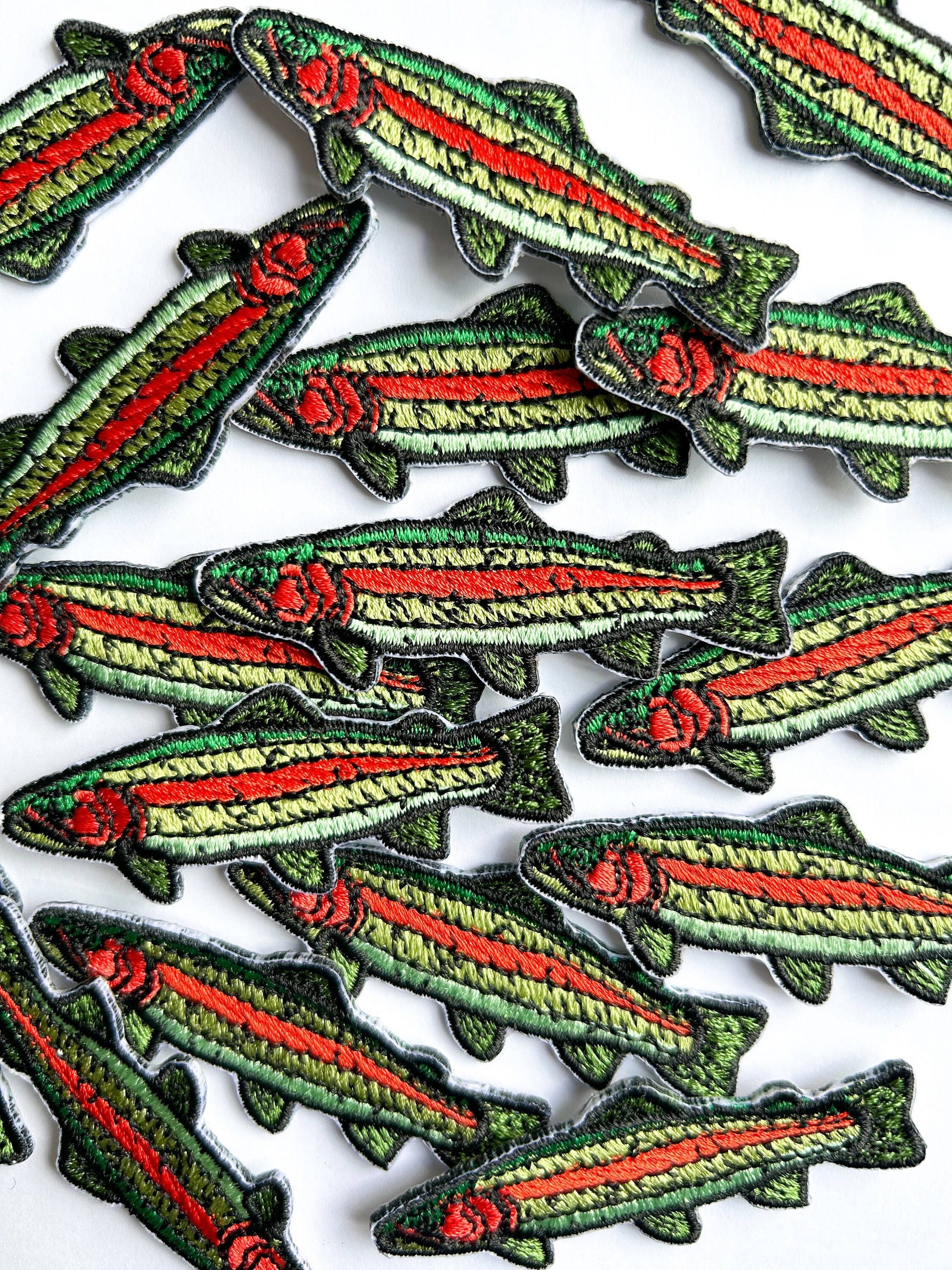 Our patch is intricately shaped like a rainbow trout and features vibrant, high-quality embroidery. The design captures the beauty and detail of this beloved fish, making it a standout addition to any collection.